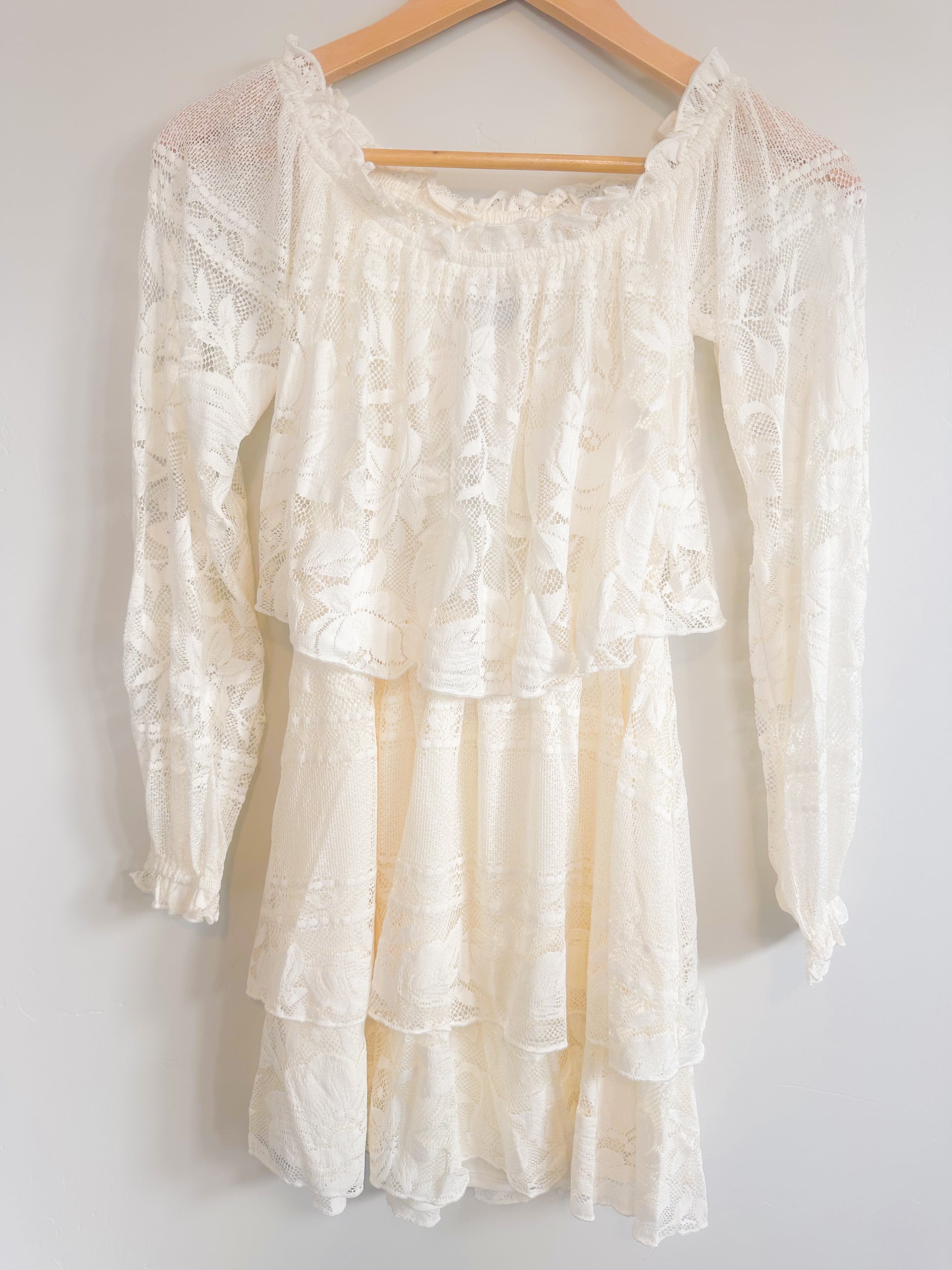 Show Me Your Mumu Ivory Whisper Lace Tiered Mini Dress (Size XS)