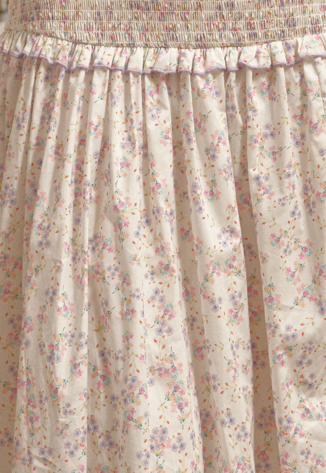 Feminine, effortless, and perfect for any season — this floral midi dress features a delicate pattern of pastel wildflowers that brings a soft, romantic touch to your look. The smocked bodice offers a comfortable, flattering fit, while the ruffle straps add a playful, vintage-inspired charm. With its flowy tiered skirt, this dress moves beautifully with every step.